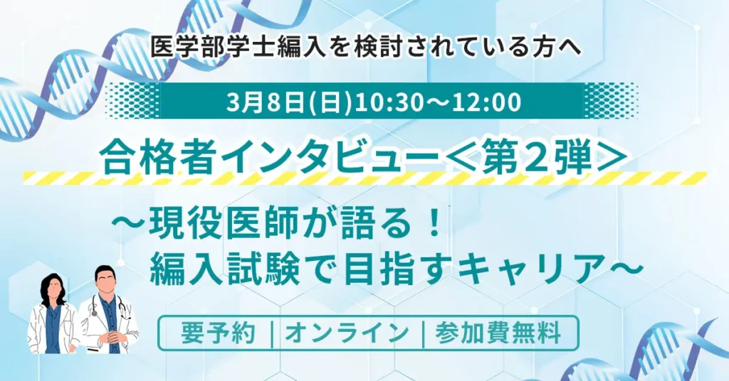 登壇紹介 医学部学士編入「合格者インタビュー」3月8日10:30-12:00
